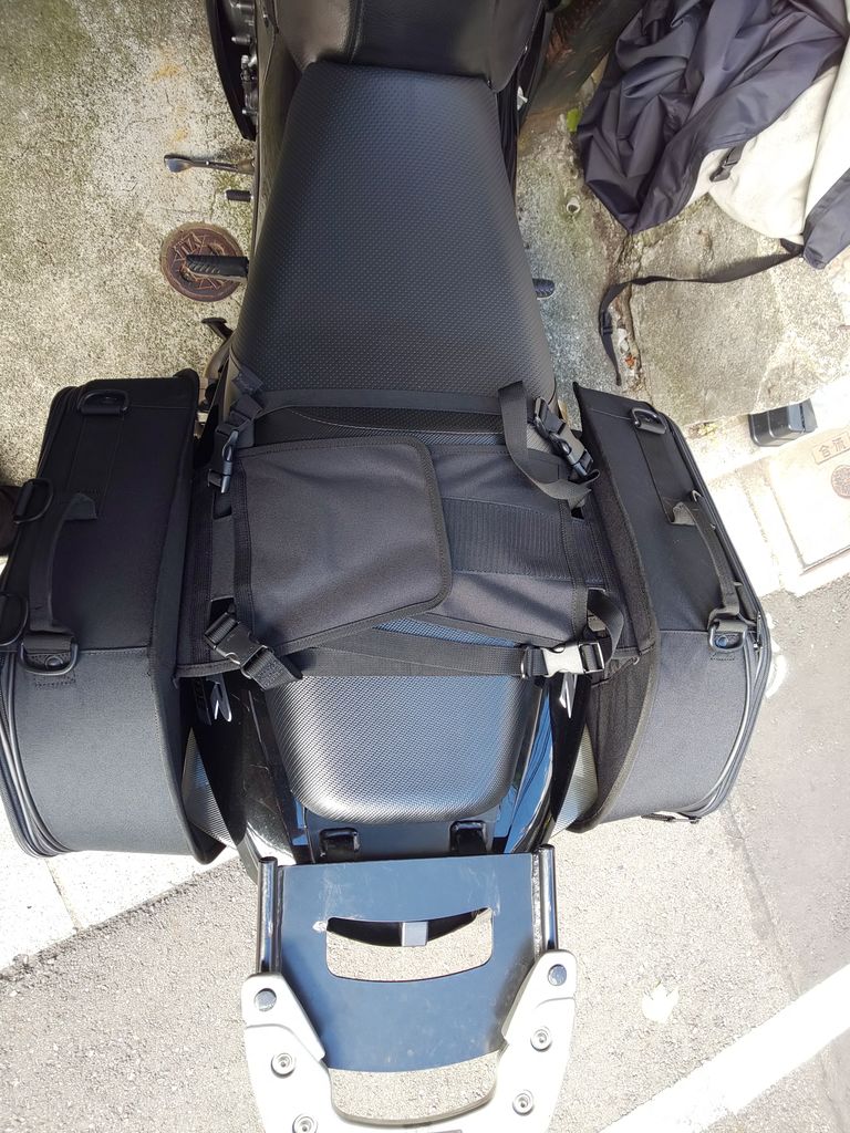 ⑤⑥については仕方がない事ですが、慣れもあるでしょうから筆者はあまり問題視してません。⑦については、なるべく両バックの継ぎ目であるシート部分の凹凸を無くす工夫が必要かも。座布団が真っ先に浮かびますが、固定出来ない座面は逆に座り心地悪そうですし、何よりバイクの挙動にリニアでないと乗る方も怖いでしょうから良い方法を考えないといけませんね。⑧はバックを取り付ける前に養生テープ直貼りとかしてれば問題ないかな??