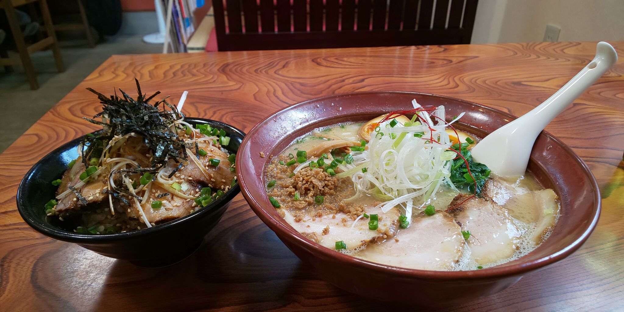 頼んだのは鶏白湯ラーメン醤油の全部乗せと、チャーシュー丼。