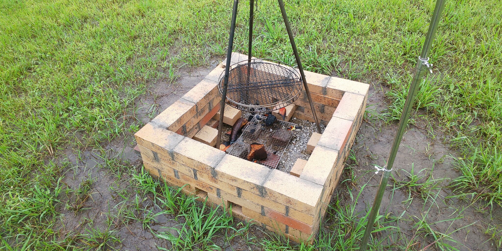 社長が皆さんと作っていたファイアピットもこの雨じゃ使えないですね・・