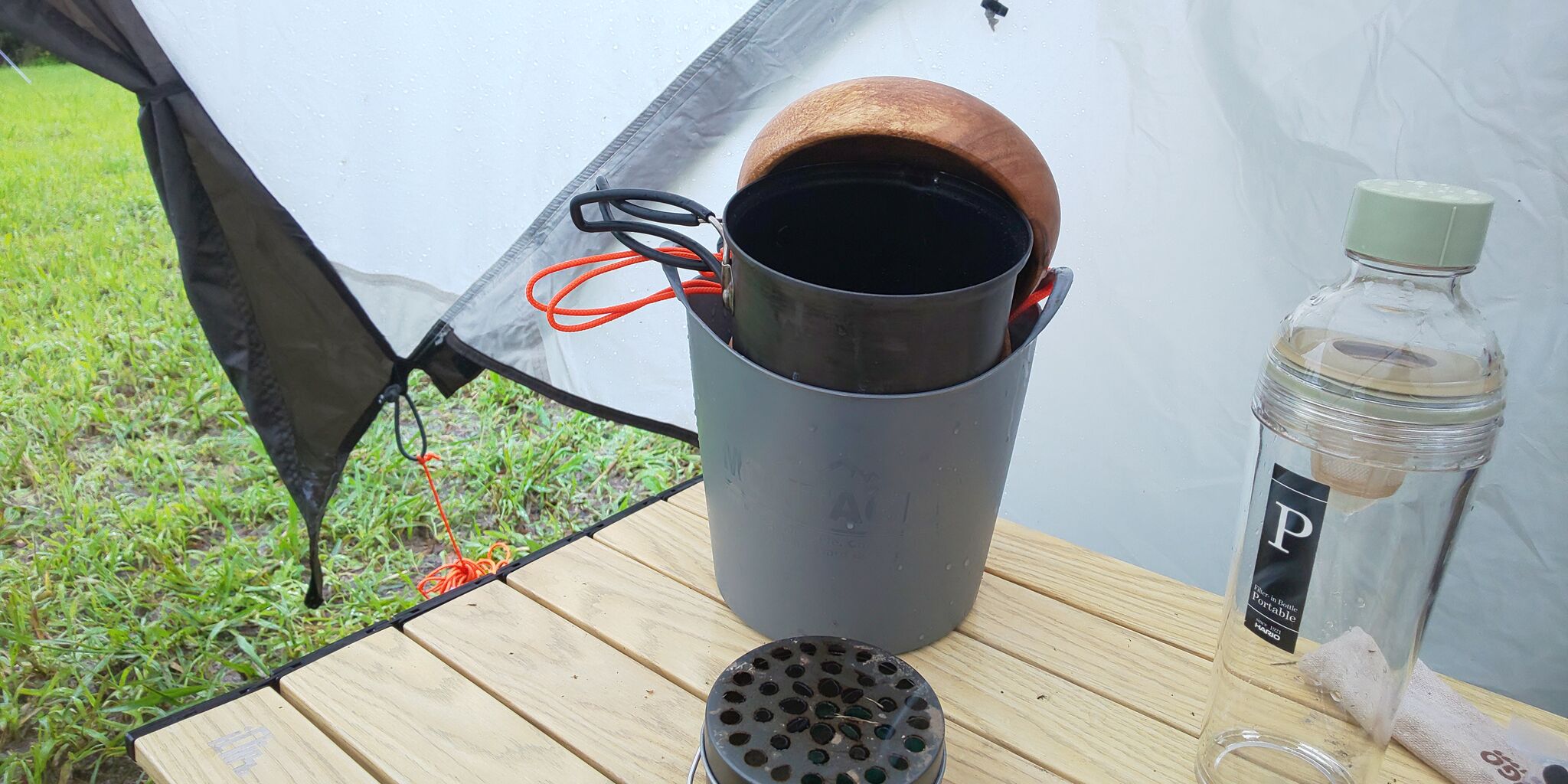 テントは浸水も無く、雨漏りする事が無かったのは勿論、防水デニムも防水ジャケットも完全に濡れないからか、すぐに乾いてくれるのでとても快適。