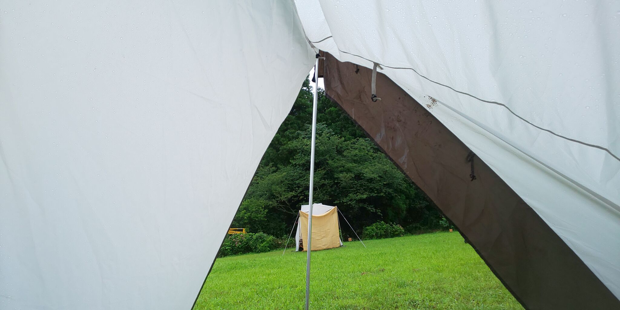 入口をポール一本で支えとくと雨も溜まらず出入りも出来て便利(*^^*)