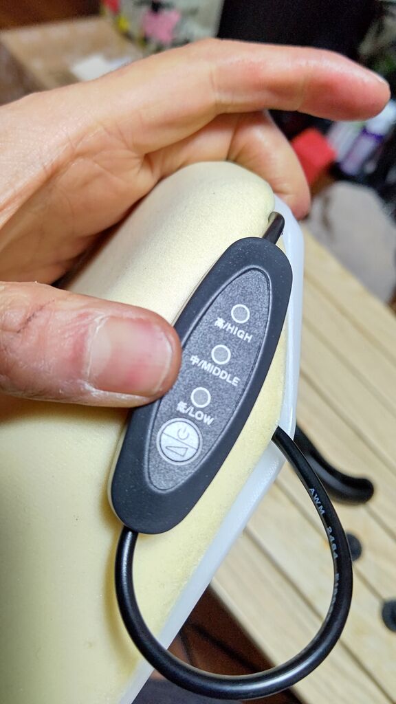 何より左足のもも下にコントローラーがあるのでON/OFFと温度調整も容易。