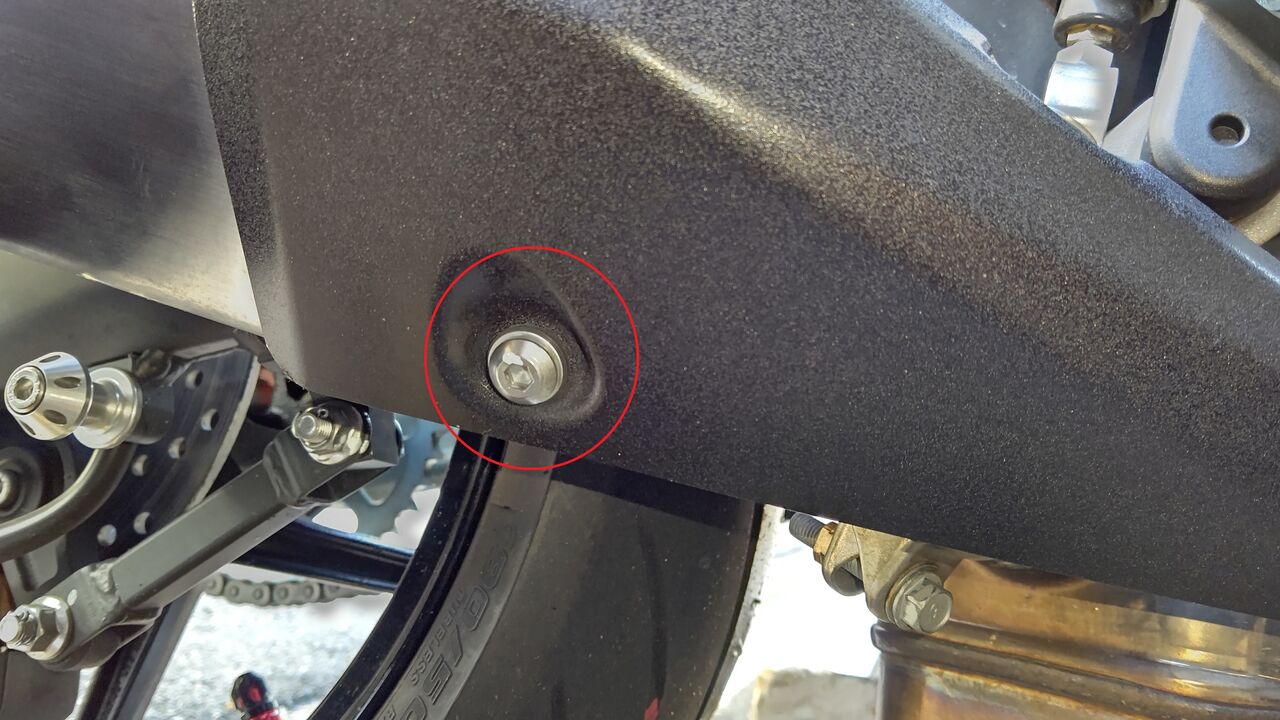 マフラーガードのネジが2か所あって、まずここ↓