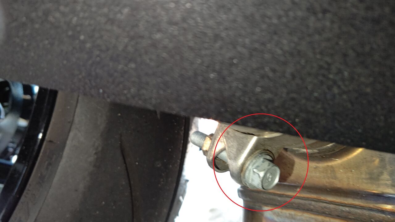 ほんで、車体下の触媒締め付けてるバンドのボルト緩めてー
