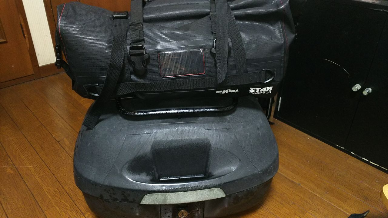 前に記事に書いたバイク用のドラムバック。